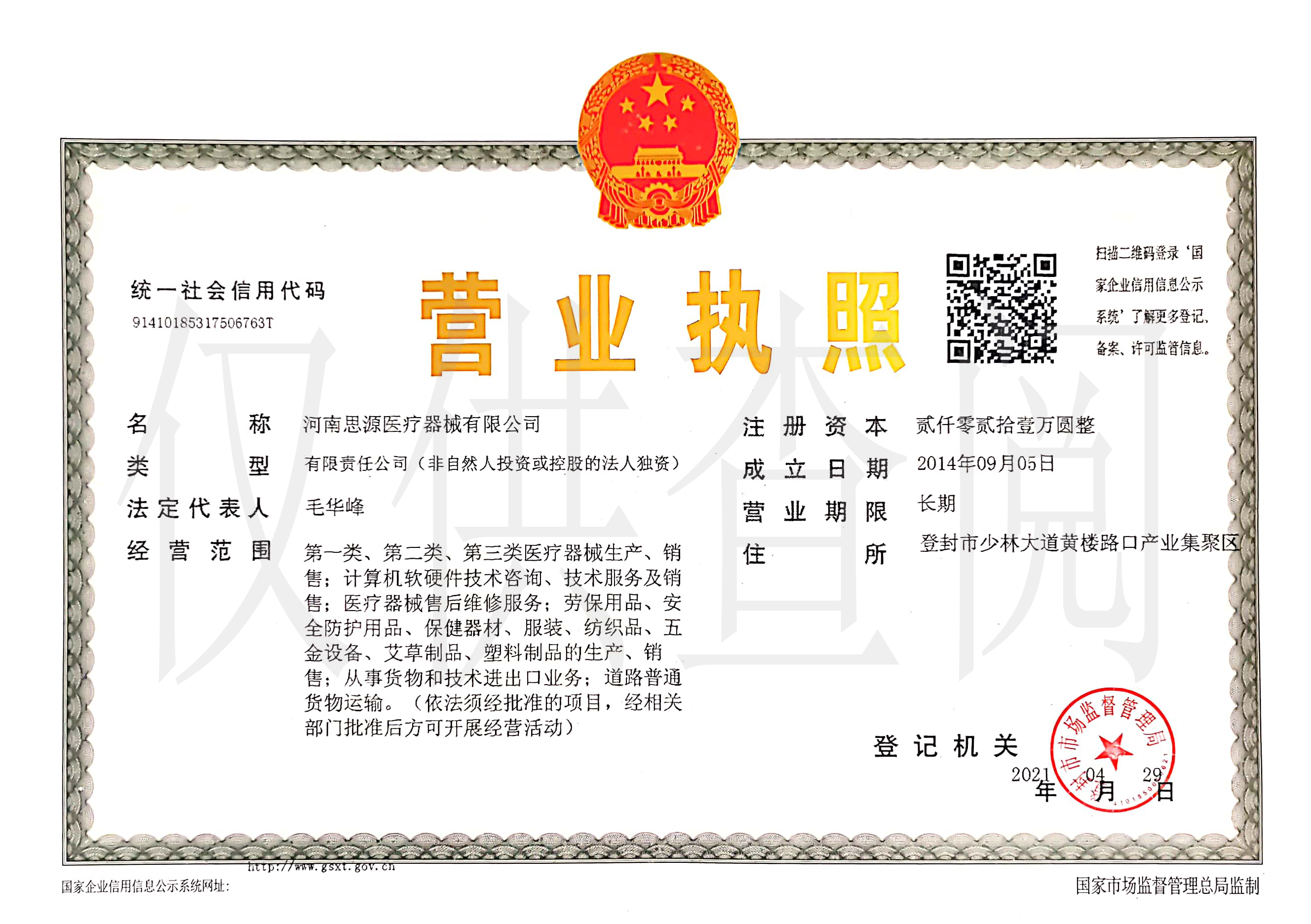 河南思源醫(yī)療器械有限公司成立于2014年11月,注冊(cè)資金2021萬(wàn)元。公司始終發(fā)心為人,經(jīng)過(guò)十幾年的風(fēng)風(fēng)雨雨,不斷成長(zhǎng),成為醫(yī)療器械生產(chǎn)、批發(fā)、零售企業(yè),是河南省醫(yī)療器械商會(huì)會(huì)員和中國(guó)醫(yī)療器械行業(yè)協(xié)會(huì)會(huì)員。